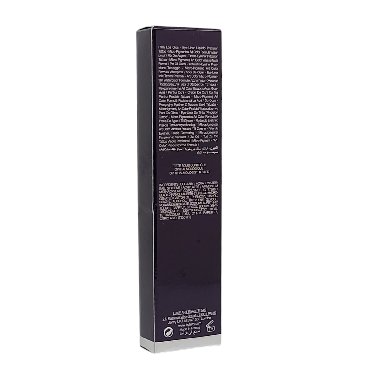 By Terry Ligne Blackstar Eye Liner So Black This waterproof eyeliner with tattoo-like precision is a true eye-enhancing ink pen. This easy-to-use felt tip liner featuring aqua-emulsion ink glides on effortlessly allowing you to create demure or smoldering eyes with a fine or diagonal line for a chic and incredibly stylish look. DIRECTIONS Apply in a fine line without blending along the lash line of the top lid. Create a thin intense and even line at the base of lashes to create the look of denser lashes.
